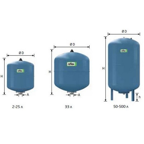 Гидроаккумулятор Reflex DE 200 предназначен для поддержания давления воды, защиты от гидроудара, корректной работы автоматики в системе водоснабжения при применении насосов повышения давления а также компенсации расширения воды при использовании емкостных водонагревателей. Поверхности, контактирующие с водой, защищены от коррозии. Присоединение трубопровода - нижнее, мембрана - заменяемая, цвет - голубой. Для напольной установки.