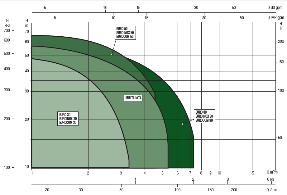 Корпус насоса из чугуна 200 UNI ISO 185.Опора двигателя из штампованного алюминиевого сплава, крышка уплотнения из нержавеющей стали AISI 304.Механическое уплотнение графит/керамика.Вал двигателя из нержавеющей стали AISI 304.Рабочие колеса, корпуса диффузоров и диффузоры из технополимера.Уплотнительные кольца из нержавеющей стали.
