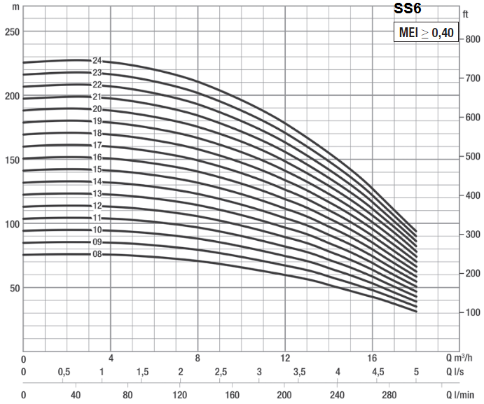 Насос оснащен обратным клапаном с низкой потерей давления. Для работы с преобразователем частоты смотрите технические характеристики подключаемого электродвигателя.