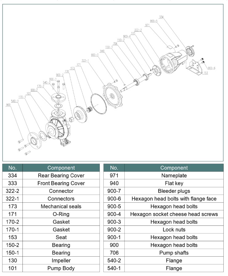 Корпус насоса: чугун. Рабочее колесо: Нержавеющая сталь или чугун. Вал двигателя: нержавеющая сталь. Механическое уплотнение: Керамический стеатит. Изоляция: Класс F. Защита: IP 160