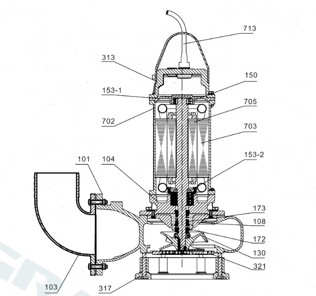 Канализационный погружной насос GRANDFAR WQK600-12-37L3