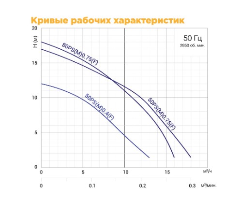 | Диаметр напорного патрубка, дюйм | DN 50 |