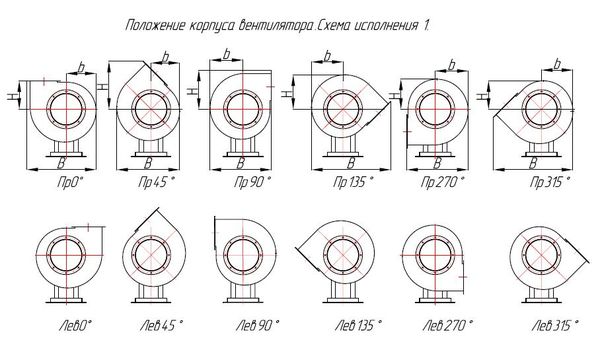 Размеры, зависящие от положения корпуса вентиляторов ВЦП 7-40 исп-1