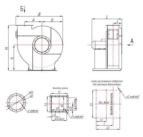 Габаритные и присоединительные размеры ВЦ 5-35, ВЦ 5-45, ВЦ 5-50