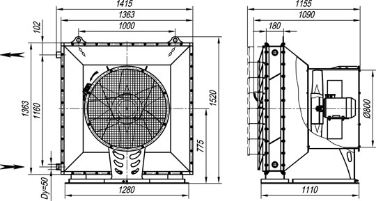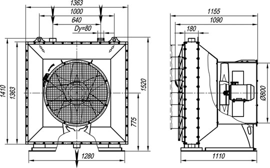 Габаритные размеры СТД-300 на базе водяного калорифера типа КСк