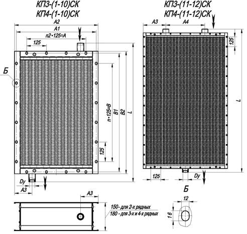 Калориферы по количеству рядов труб делятся на 3-рядные (КПСк-3) и 4-рядные (КПСк-4)
